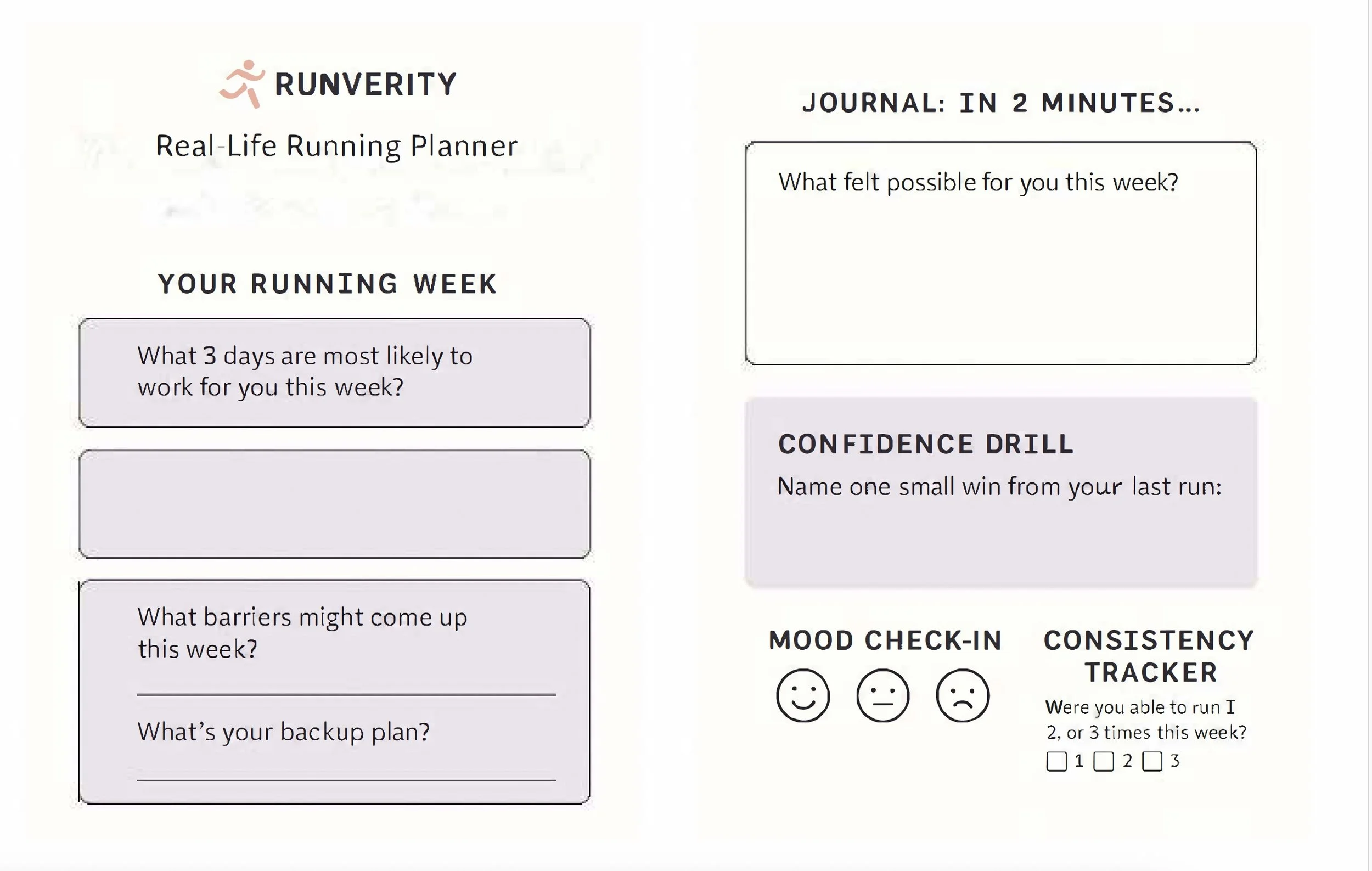 Struggling to make running fit into your life? This planner helps you set realistic goals, reflect on what’s working, and keep going — even when life’s a bit much.